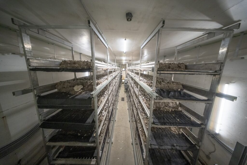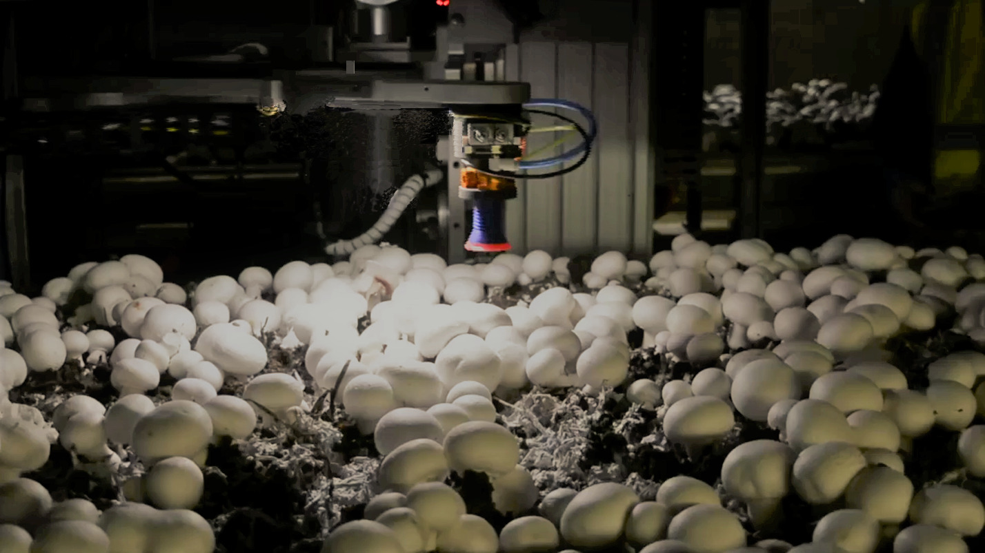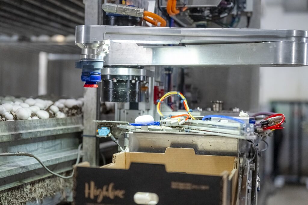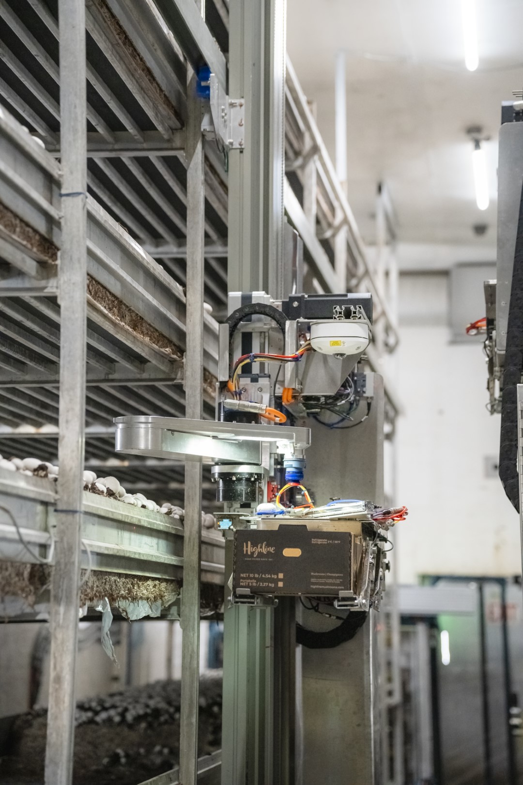 The robots thinned, trimmed, packed and brought mushrooms to the front of each room.